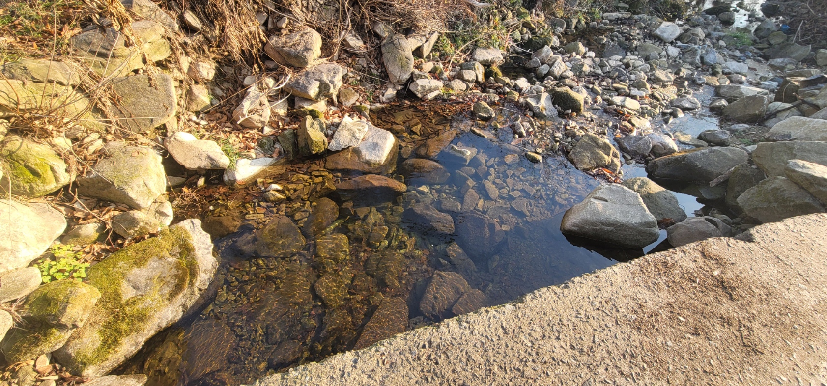 역시 개울가에는 물이 엄청 맑아서 좋아요