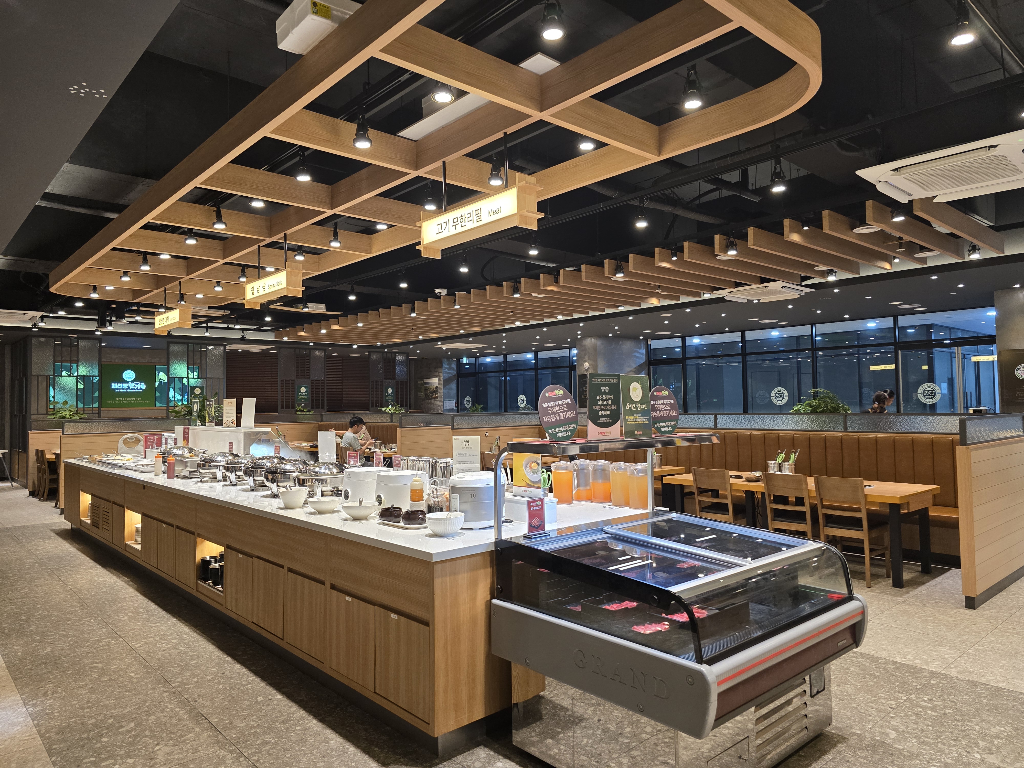 신선한 야채, 호주 청정우, 다양한 음식이 있는 샐러드바를