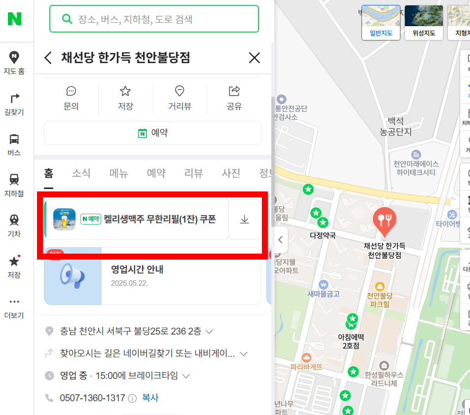 네이버에 "채선당한가득 천안불당점" 검색해 들어가시면