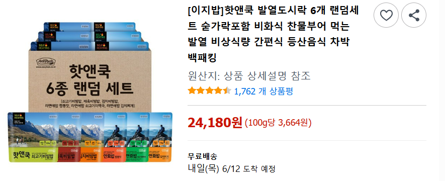 이지밥 핫앤쿡: 찬물 (약 500ml) 필요 , 조리시간 10분 소요, 단개 개당 4,000원대