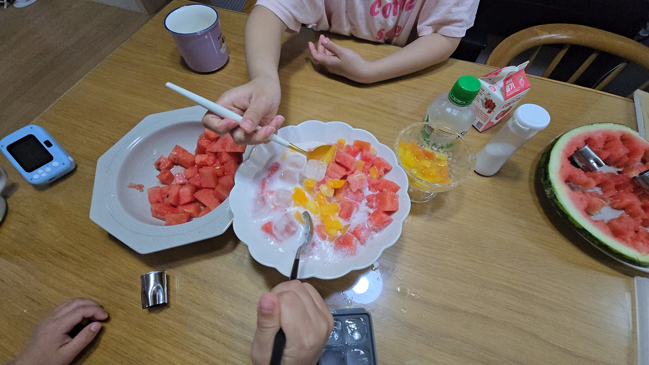 이리저리 생각해보다가 시원하고 달콤한 수박화채를 만들어 먹기로 하였답니다.