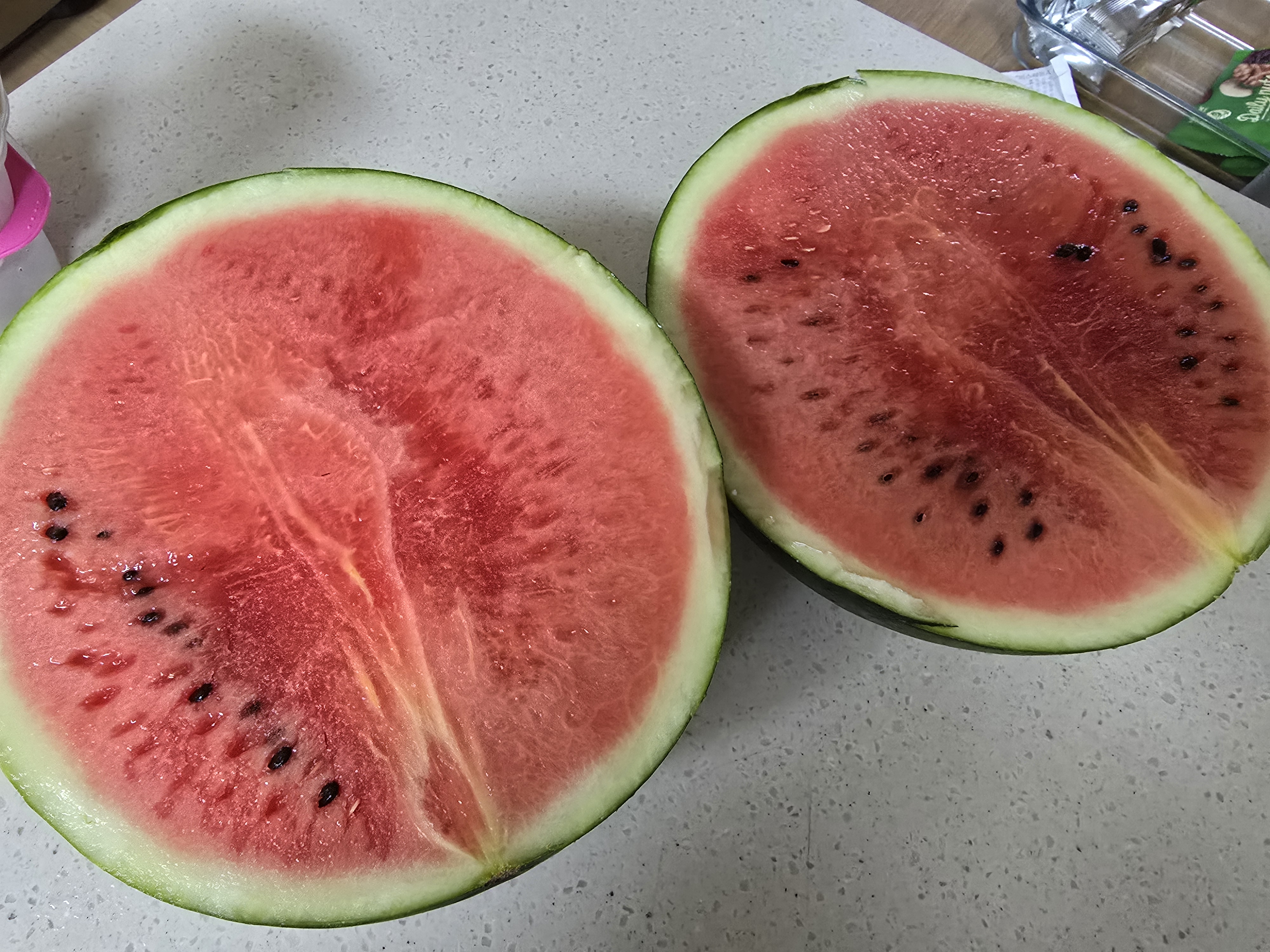 반 가르자마자 수박이 맛이 없을 것 같다는 느낌이 퐉 왔답니다.