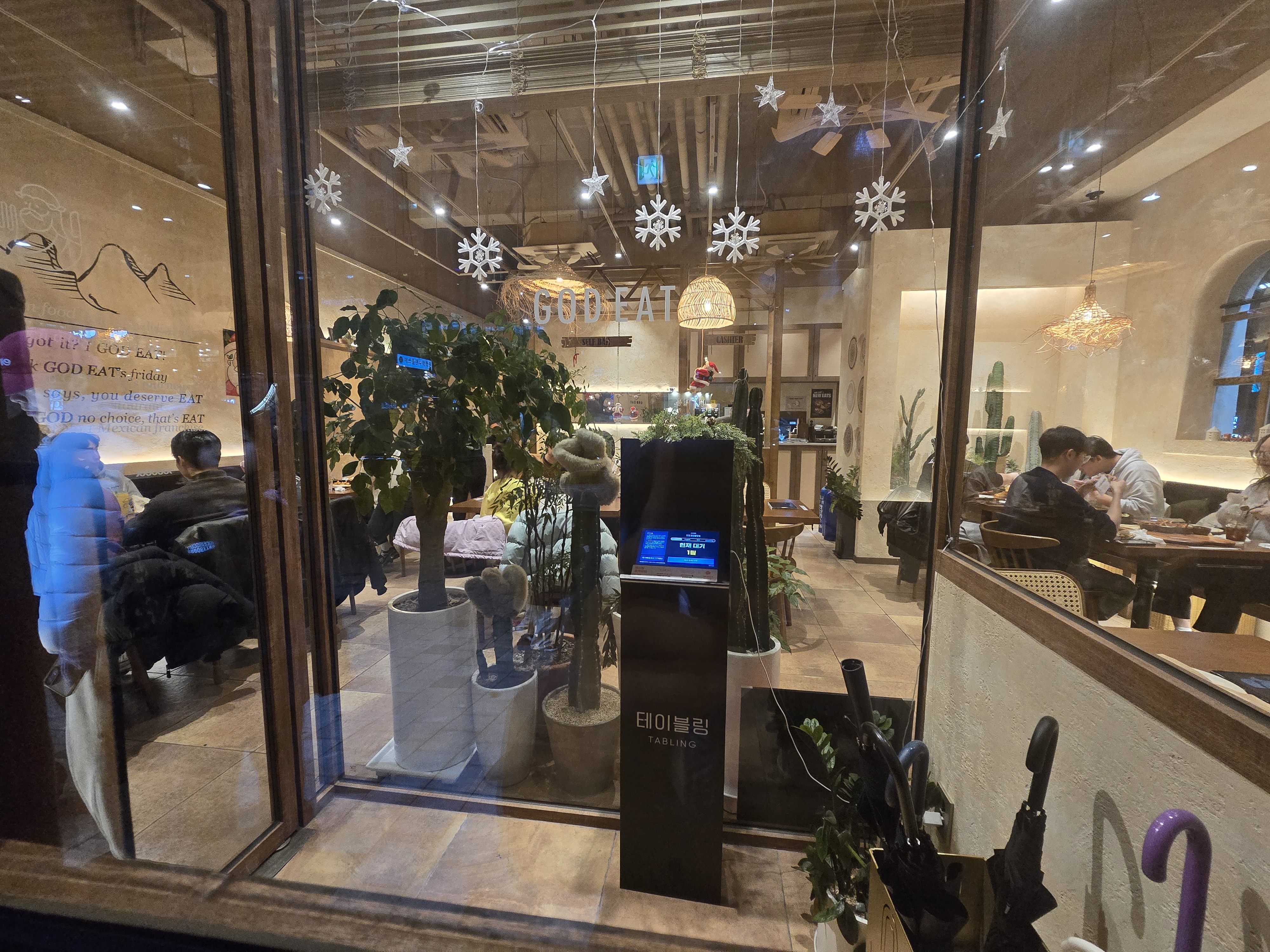 문을 열면 맛집 답게 테이블링 대기하는 기계가 놓여져있습니다.