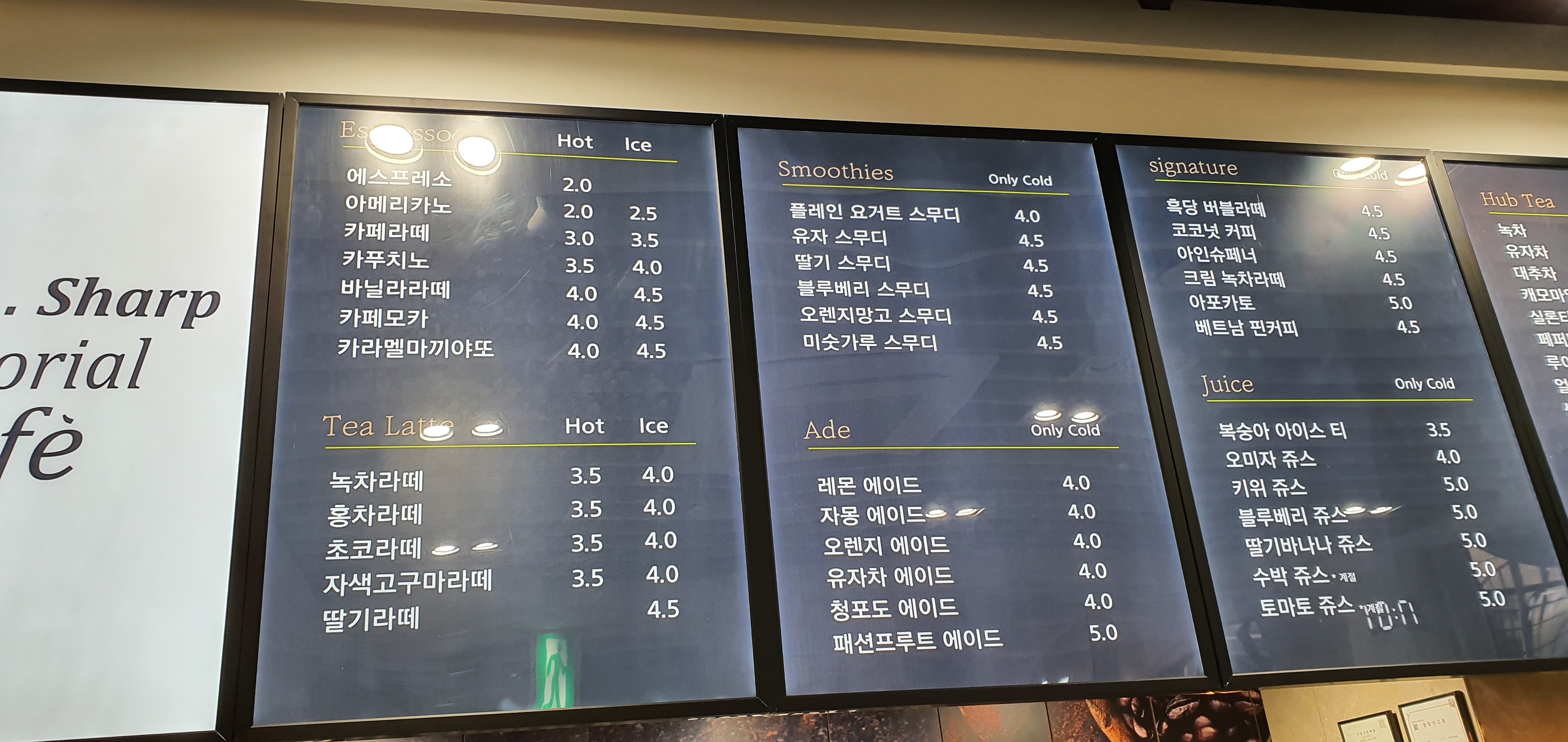 스타벅스 처럼 고가가 아니라 적정선 보다 싸게 책정이 되어 있어서 가격적인 메리트도 있어요